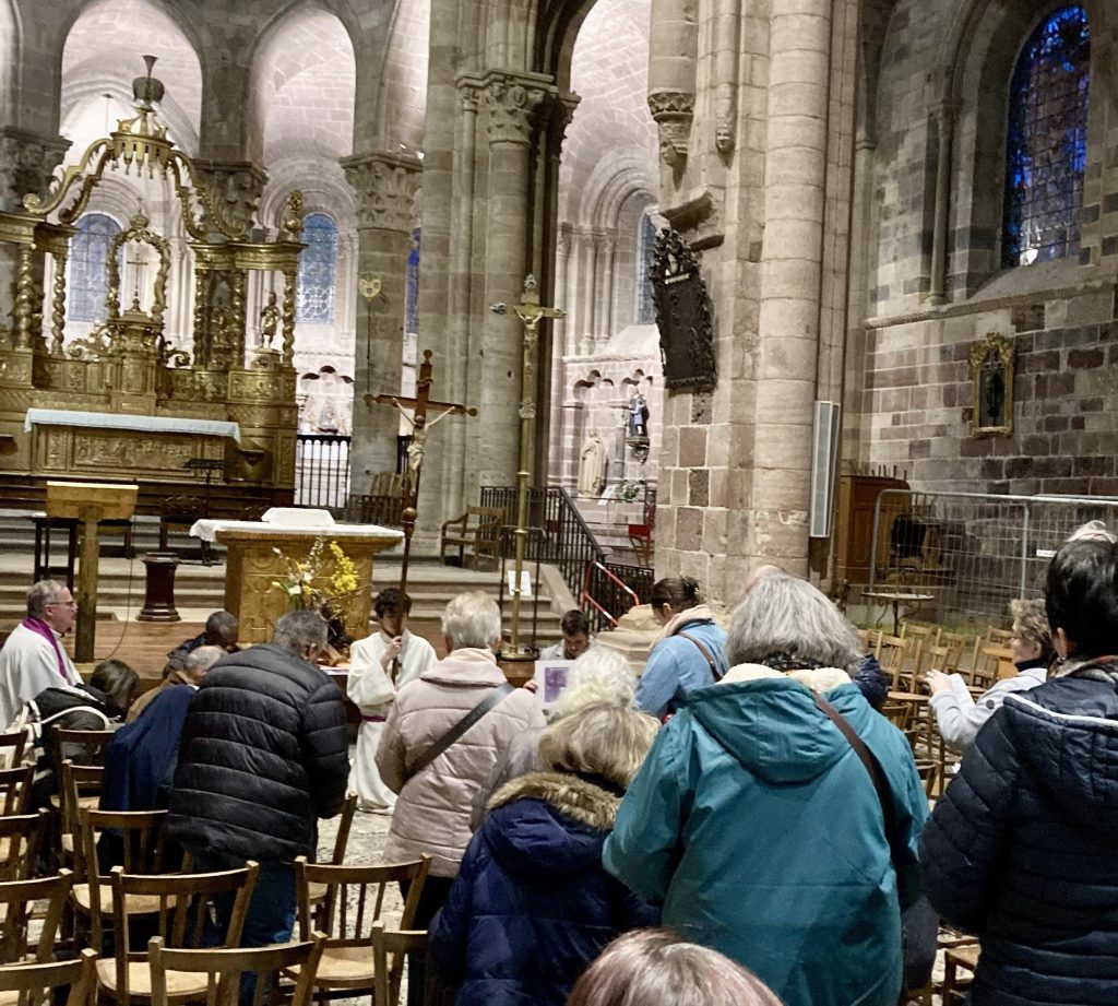 Le 13 mars, dans la Basilique, un chemin de croix a rassemblé une trentaine de personnes autour des pères David Declerck et Grégoire Bonignou. Ce temps de méditation et d'intercession a été suivi de l'adoration du Saint Sacrement.