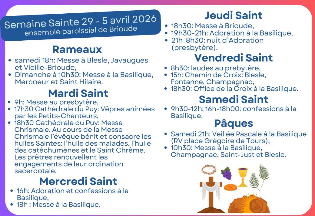 Voici les horaires des célébrations de la Se maine sainte à Brioude.
